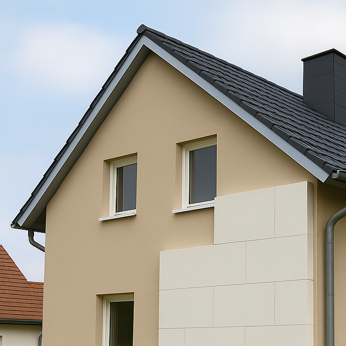 Besonders langlebig und hochwertig – ideal für Gebäude mit höherem Anspruch an Gestaltung oder Feuchteschutz. Die Luftschicht hinter der Fassade schützt vor Witterung und sorgt für ein ausgewogenes Raumklima. Hervorragend kombinierbar mit nachhaltigen Materialien wie Holz oder Faserzement.